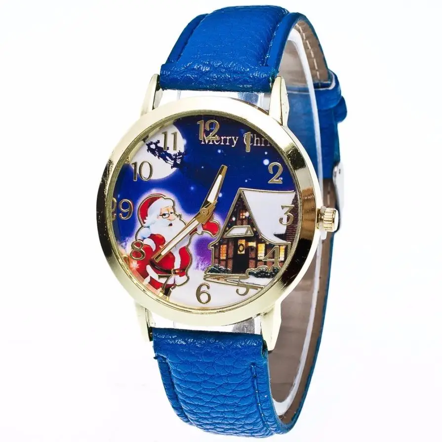 Goede Kopen Mode Kerst Ouderen Patroon Lederen Band Analoge Quartz Vogue Horloges horloges van de beroemde luxe merk klok Goedkoop