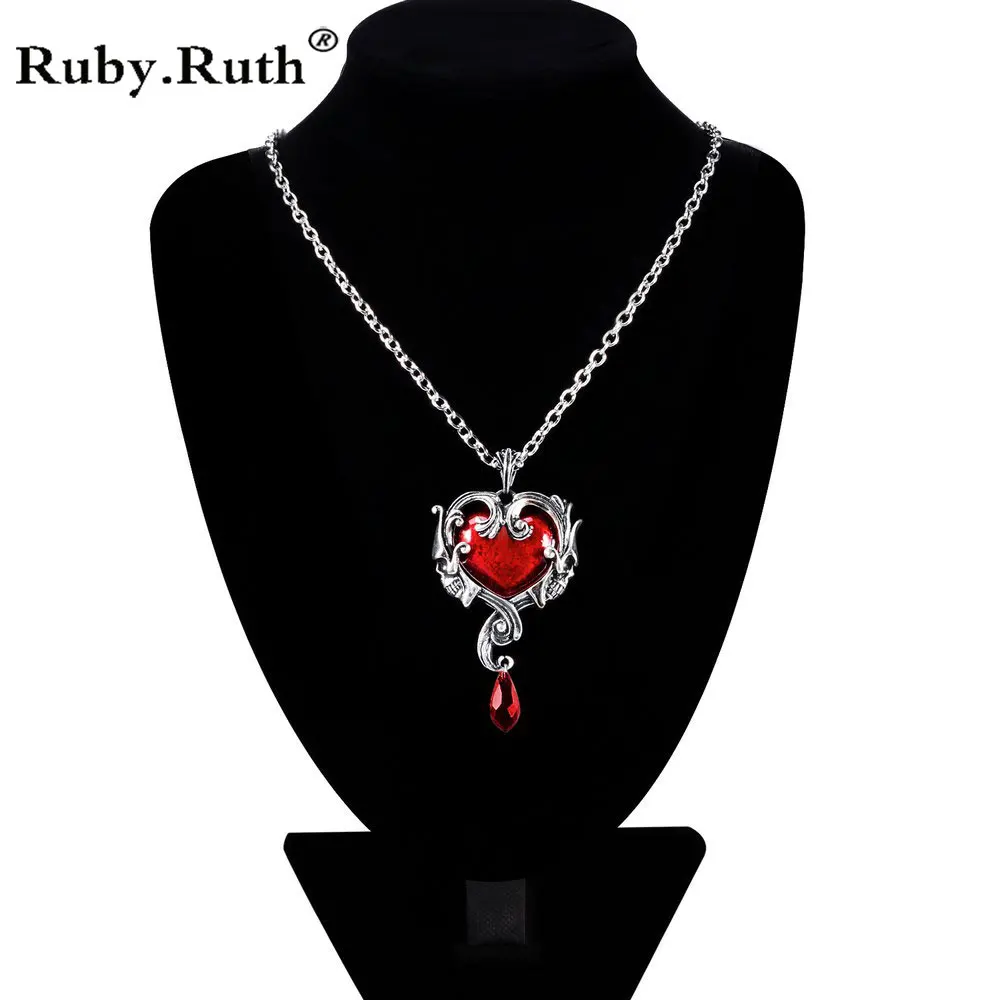 Kopen Goedkoop 2018 Hot punk Halloween retro schedel rode rode perzik hart kristal ketting hanger accessoires Mannen Vrouwen Sieraden Prijs