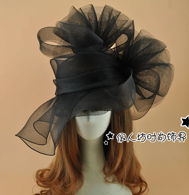 Beste Kopen Super Grote Zwarte Netto Bloem Tovenaar Hoed Haarspeld Fashion Vrouwen Fancy Tonen Cocktail Party Mesh Haaraccessoires Bruiloft Hoed Goedkoop