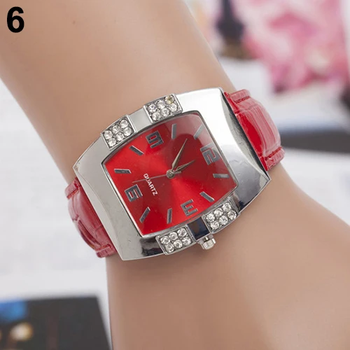 Beste Koop 2015 Nieuwe Vrouwen Strass Vat Vorm Faux Lederen Band Analoge Quartz Horloge Goedkoop