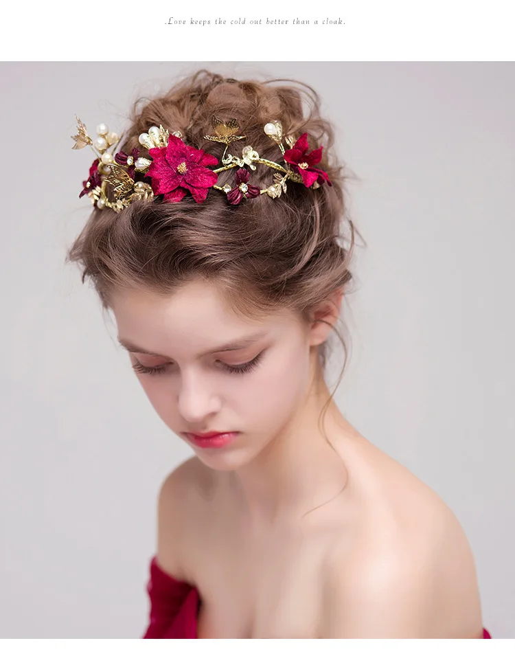 Rood Rose Bloem Parels Haar Stuk Sieraden Voor Vrouwen Hoofdband Prijs