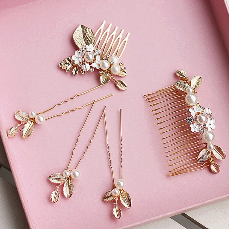 Kopen Goedkoop Nieuwe Vintage 5 Stks set Gold Kammen Pearl Bloem Bladeren Haarspelden Clips Set Bruids Haaraccessoires Voor Bruiloft Vrouwen Sieraden Online