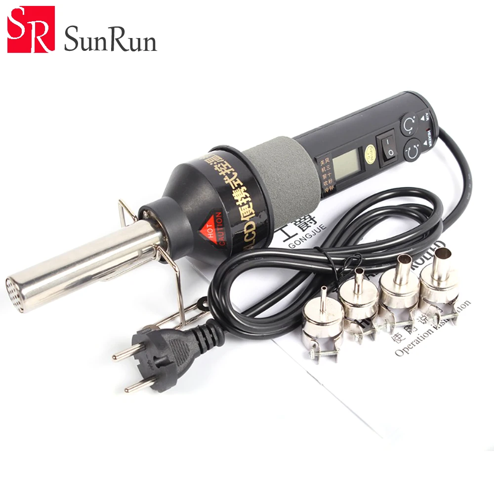 Kopen Goedkoop 220 v 450 w 450 Graden LCD Verstelbare Elektronische Heat Hot Air Gun Desolderen Soldeerstation IC SMD BGA Rework 4 Nozzle 8018LCD Prijs