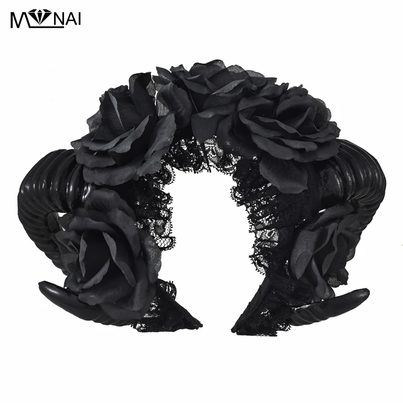 Beste Koop Handgemaakte Zwarte Heksen Vamp Gothic Hoorn Pan Bloem Kroon Hoofdband Halloween Cocktail Party Hoofddeksels Fancy Dress Accessoires Goedkoop
