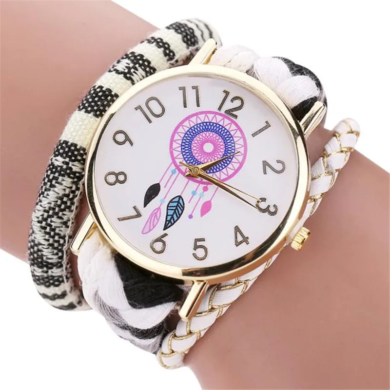 Goede Koop Nieuwe Stijlvolle vrouwen Armband Horloges dream catcher patroon Breien Armband Horloge Dames jurk multi layer groothandel Gratis verzending Goedkoop
