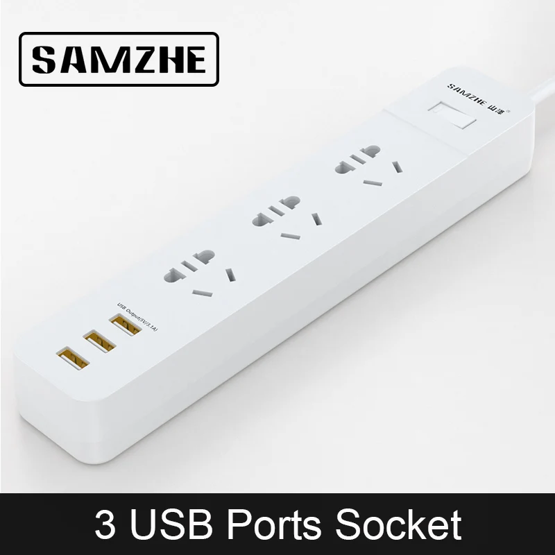 Beste Koop SAMZHE Power Strip Socket Draagbare Strip Plug Adapter met 3 Usb poort Multifunctionele Smart Home Elektronica Goedkoop