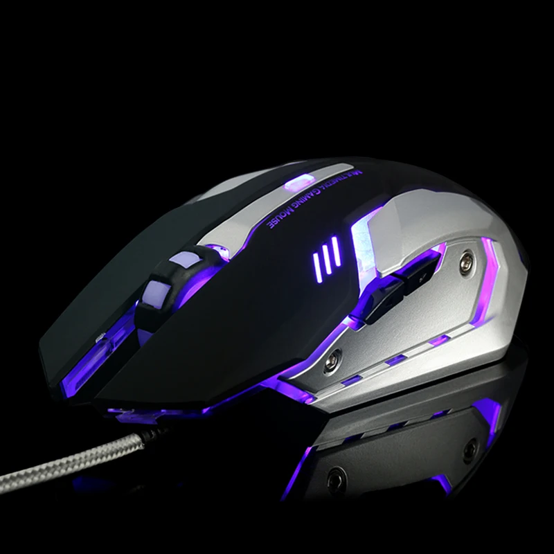 Beste Kopen Bedrade V8 Stille USB Ergonomische 3200 DPI Optische Game Gaming Mouse voor PC Laptop Computer LED Backlit Metalen Plaat Gamer Mouse muizen Goedkoop