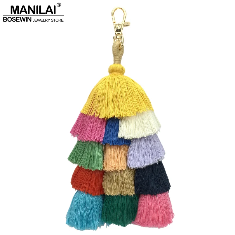 Kopen Goedkoop MANILAI Handgemaakte Weave Boho Tas Hanger Vrouwen Accessoires Charm Sleutelhanger Fashion Multicolor Katoen Kwasten Sleutelhanger Online